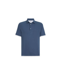 Cotton piqué shirt-style collar polo with faux-layering