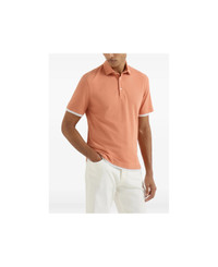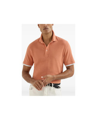 Cotton piqué slim fit polo with shirt-style collar and faux-layering