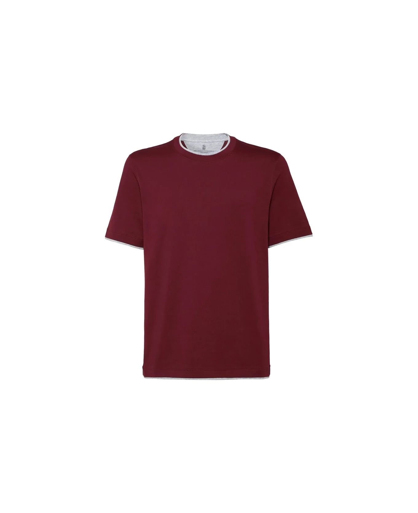 burgundy ribbed texture contrasting collar short sleeves straight hem Made in: Italy Color: RED Model number: M0B137427C0A16