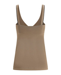 Brunello cucinelli's cotton top is an elegant and refined piece perfect for sophisticated summer looks. the sleeveless design and v-neckline on the front create a feminine, lightweight silhouette, while the thin straps, embellished with the brand's iconic shiny jewels, add a touch of luxury and originality. the structured round chest ensures a comfortable and defined fit. with a monochrome pattern, this top is easy to pair with a variety of outfits, while the regular fit ensures all-day comfort. Composition: 100% % Cotton Made in: Italy Model number: M0T18BA702C8705