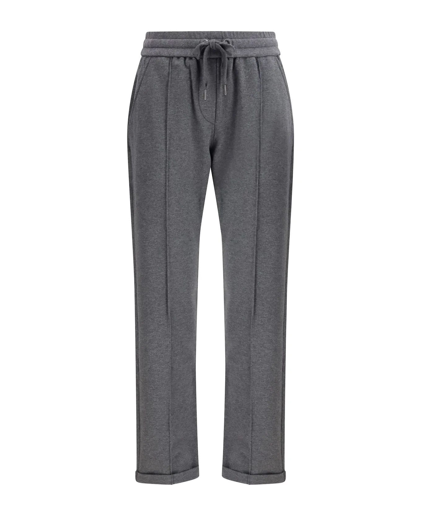 The track stretch-fleece trousers with monili detailing by brunello cucinelli blend effortless comfort with refined craftsmanship. a ribbed elastic waistband with adjustable drawstring offers ease and adaptability, while the side pockets are accented with the brand s signature nickel-free monili embroidery. a stitched front crease brings subtle structure to the relaxed silhouette, finished with a neat cuffed hem. a versatile piece designed to elevate everyday dressing with understated sophistication. Composition: 98% % Cotton, 2% % Elastane Made in: Italy Model number: MH827FB799C080