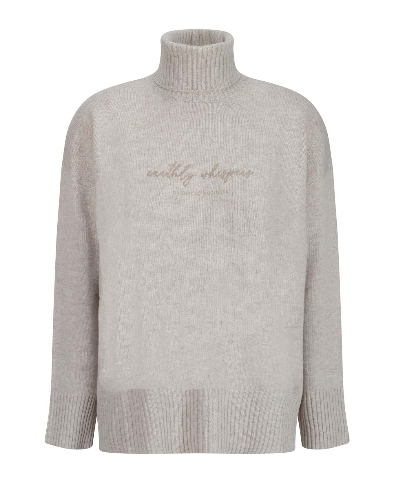 Virgin wool, cashmere and silk turtleneck sweater with embroidery