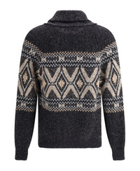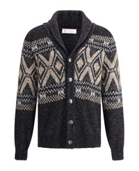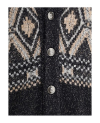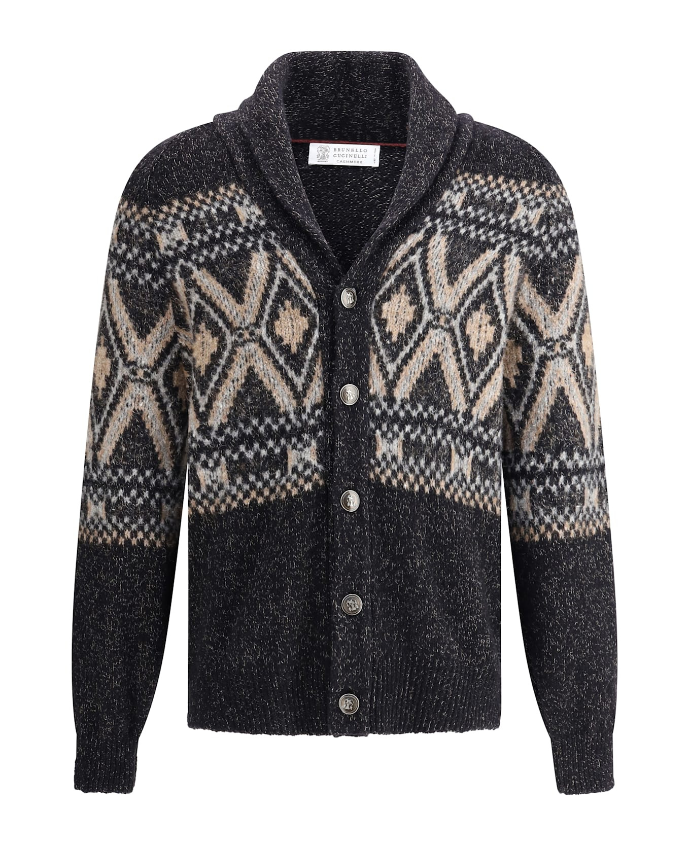 Geometric jacquard cardigan in mouliné virgin wool, silk and cashmere with metal buttons