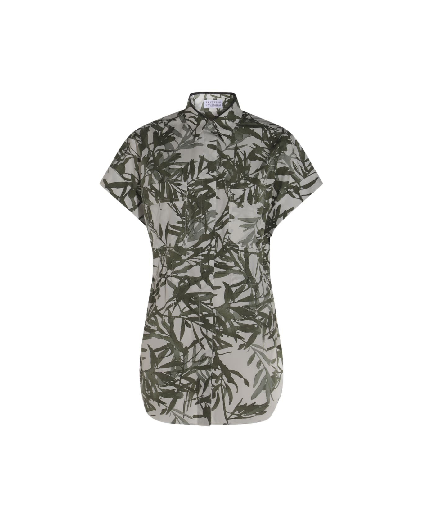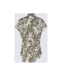 Cotton herbarium print poplin short sleeve shirt with shiny collar detail
