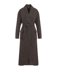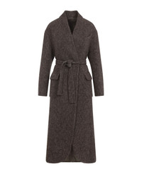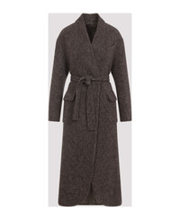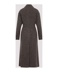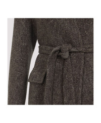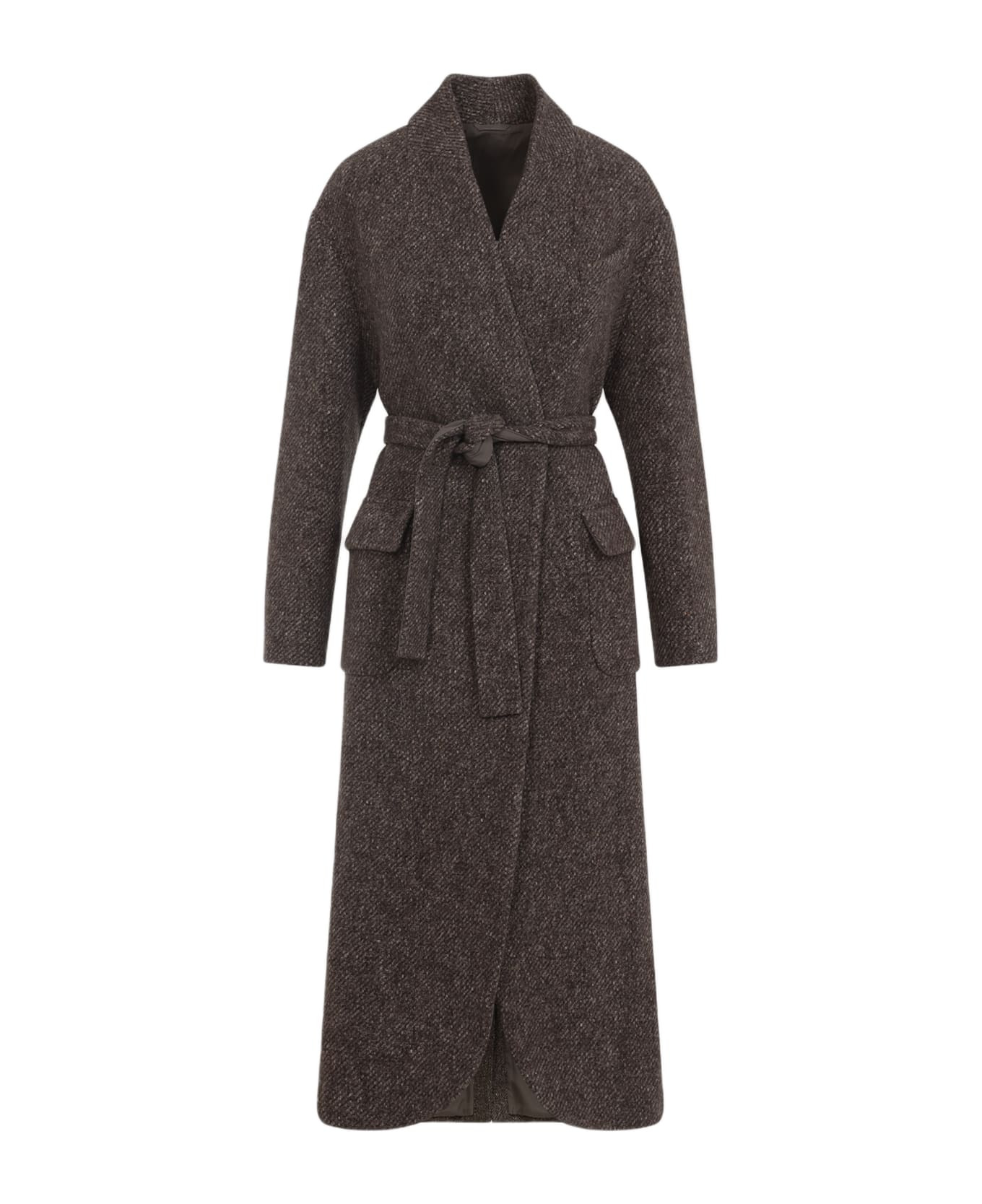Brunello Cucinelli Brown Wool and Cashmere Coat. Crafted from brown herringbone wool and cashmere, classic lapel, welt pocket on the chest, two front flap pockets, tonal self-tie belt fastening, long sleeves, curved shoulder, back central slit, lined. Made in: Italy Color: Brown Multi Model number: MG5349931C001