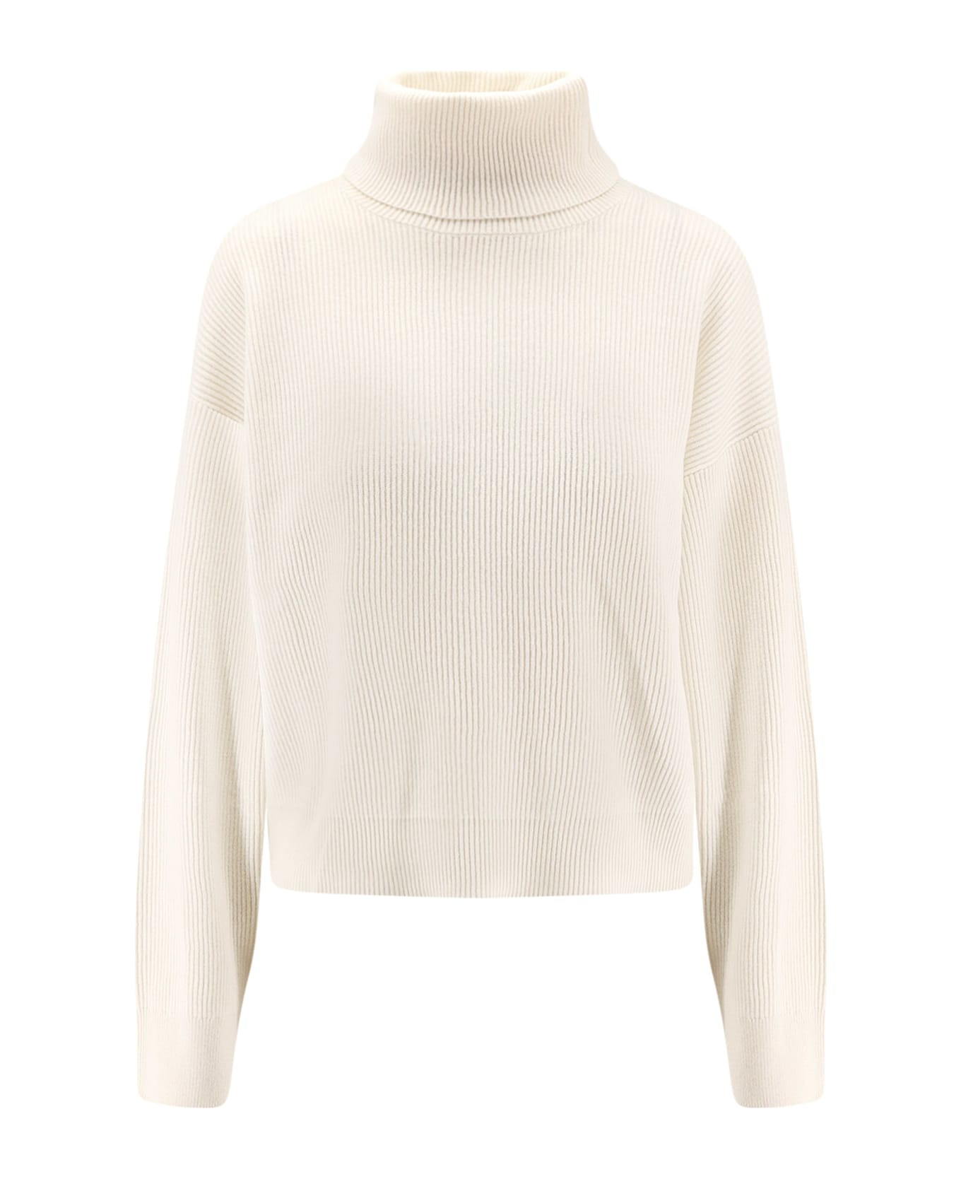 Turtle neck and long sleeve Ribbed knit Monili detail on the back Made in Italy 60% wool 30% cashmere 10% silk SKU: M16129313C2723 Made in: Italy Color: PANAMA Model number: M16129313C2723