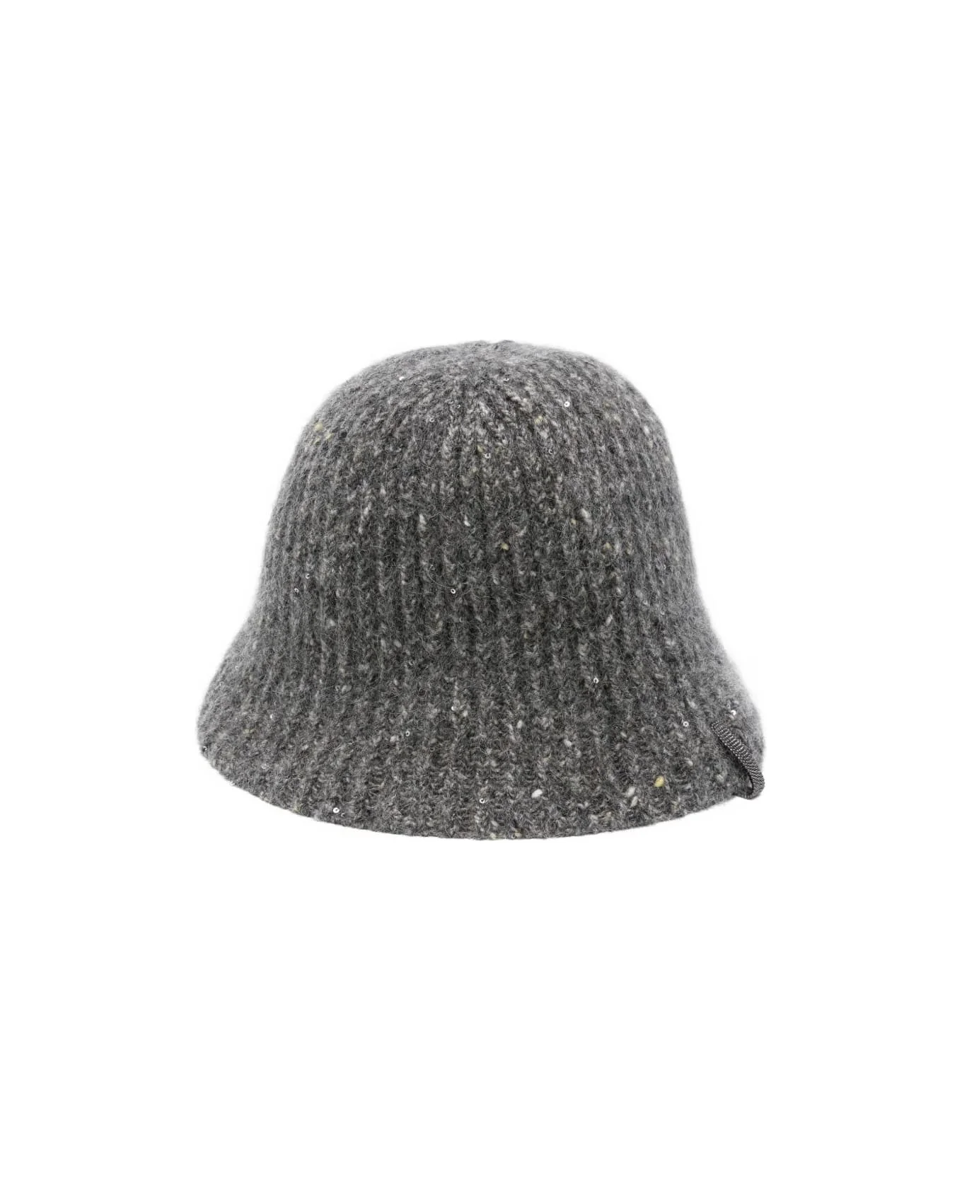 dark grey ribbed knit sequin embellishment round crown Composition: Polyimide, 43% , Mohair, 19% , Virgin Wool, 15% , Cotton, 8% , Cashmere, 6% , Wool, 5% , Polyester, 4% Made in: Italy Color: Grey Size and fit: - CIRCUMFERENCE: 56.0 Centimetres - Model number: MCAP9A026C4405