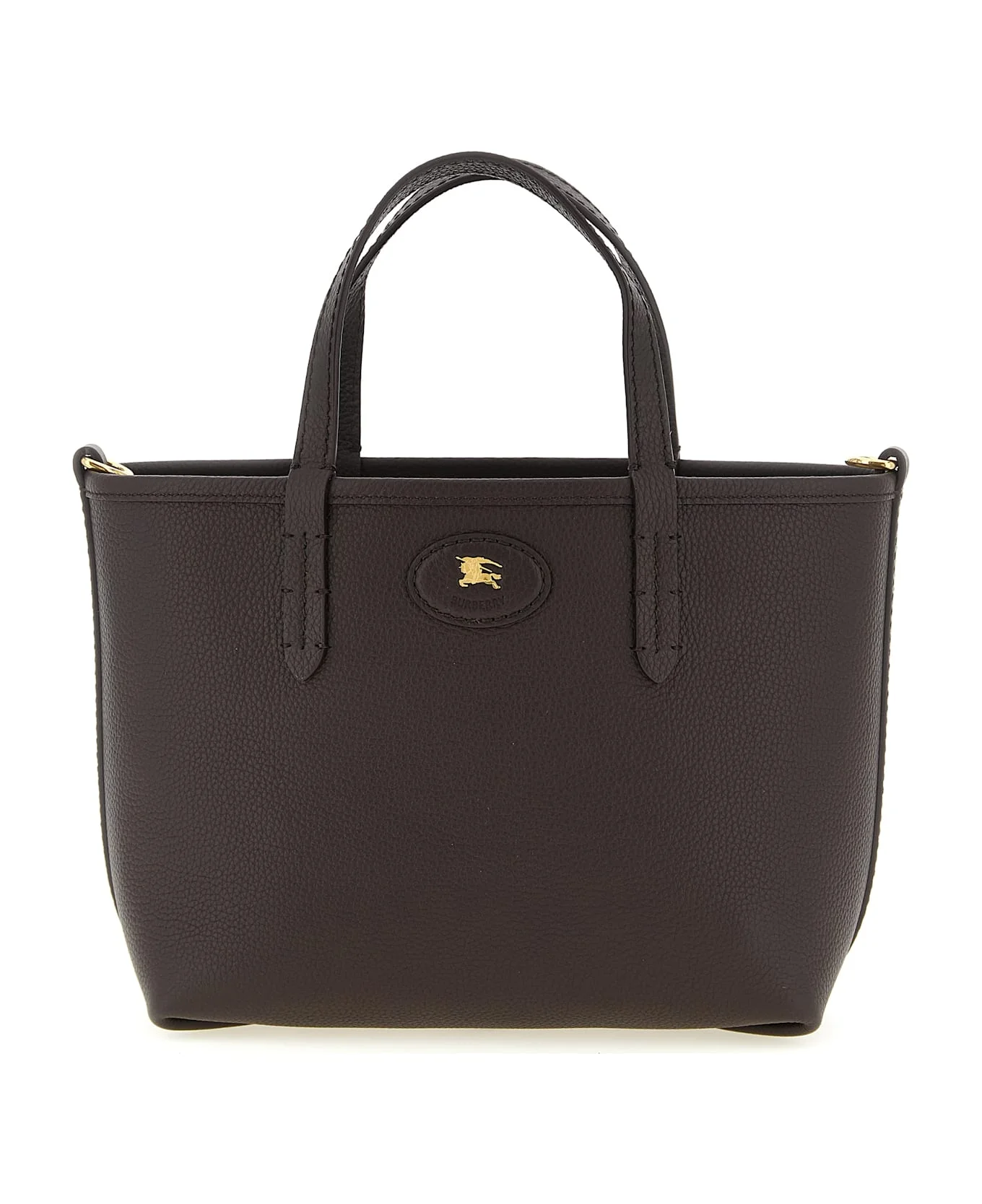Reversible 'Bloomsbury' mini handbag in grain calf leather and cotton blend and linen woven with Burberry Check, leather patch with front metal 'Equestrian Knight Design' logo, double fixed handle, adjustable and removable shoulder strap. Composition: 100% calfskin leather (Bos Taurus) Made in: Italy Color: Multicolor Size and fit: - W 26 x H 18 x D 11 cm Model number: 8119627PEATSAND