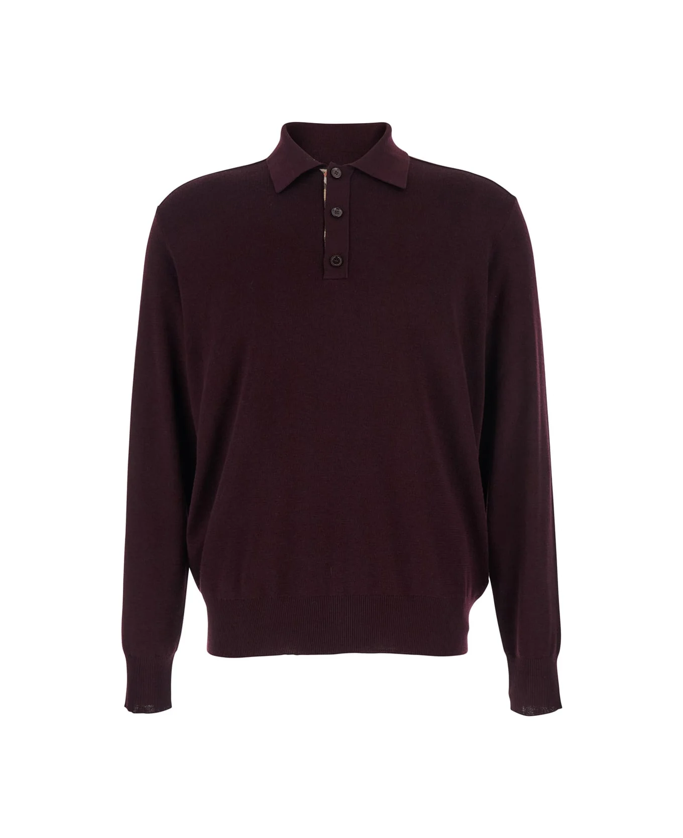Bordeaux Polo Shirt With Classic Collar And Check Detail In Wool Man