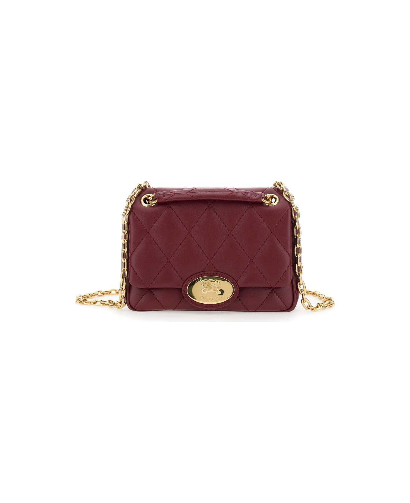 Bordeaux Quilted Crossbody Bag With Ekd Plaque On The Front And Chain-link Shoulder Strap In Leather