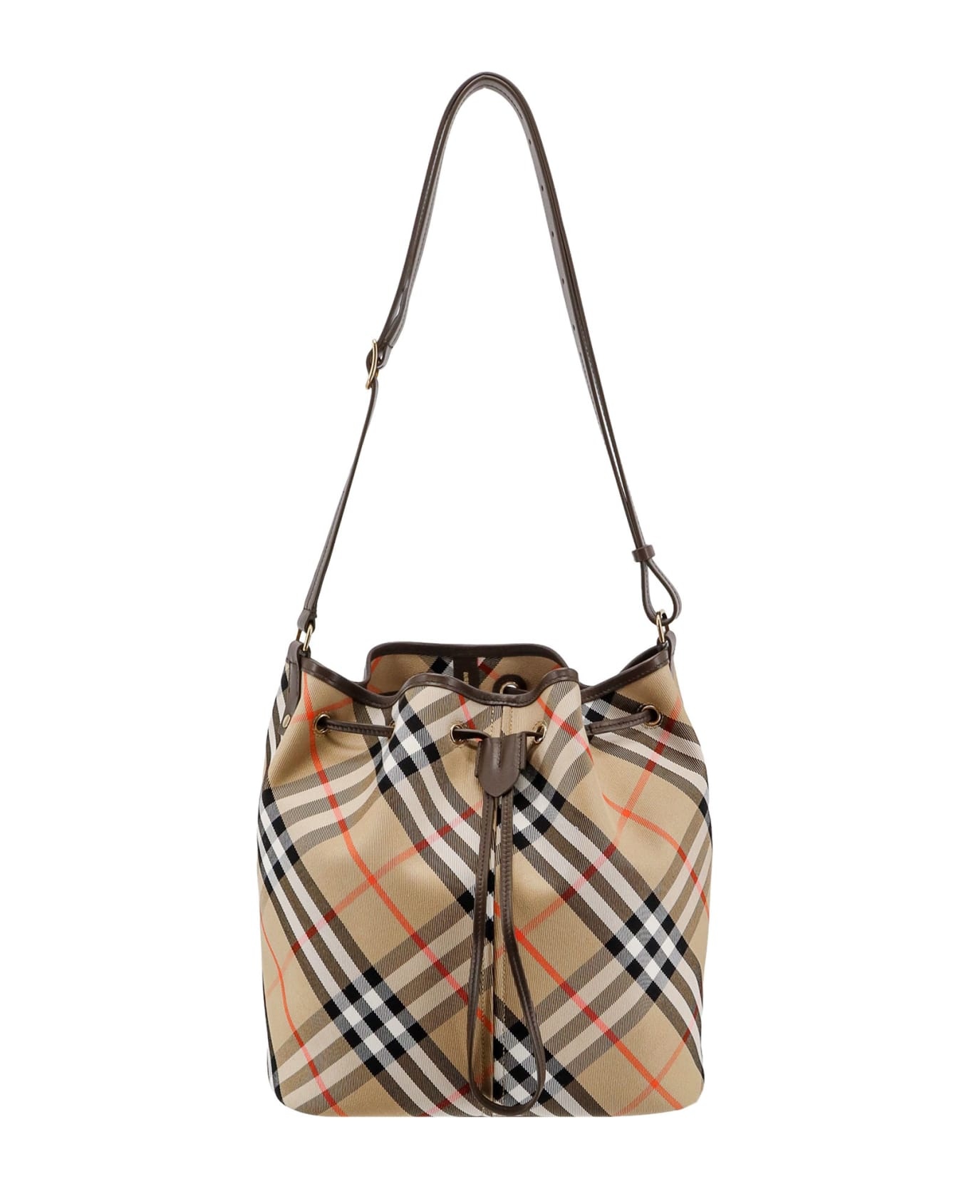 Beige Jacquard Check Drawstring Bucket Bag