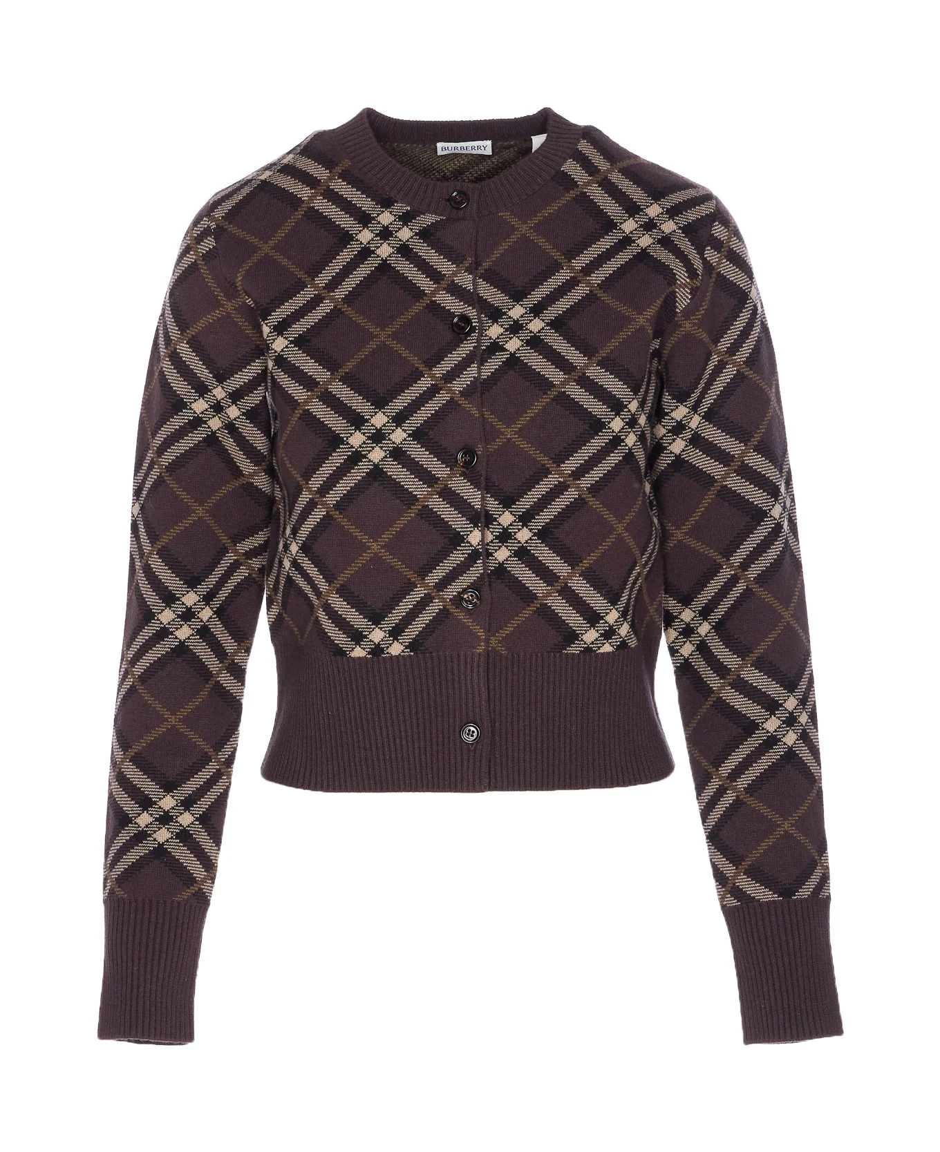 check-pattern cashmere cardigan