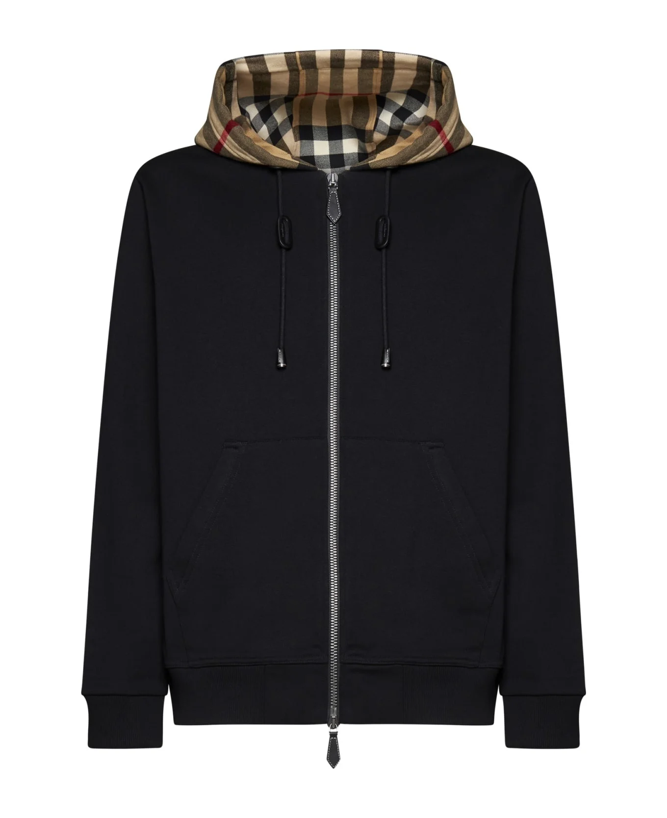 Check Detailed Zipped Drawstring Hoodie