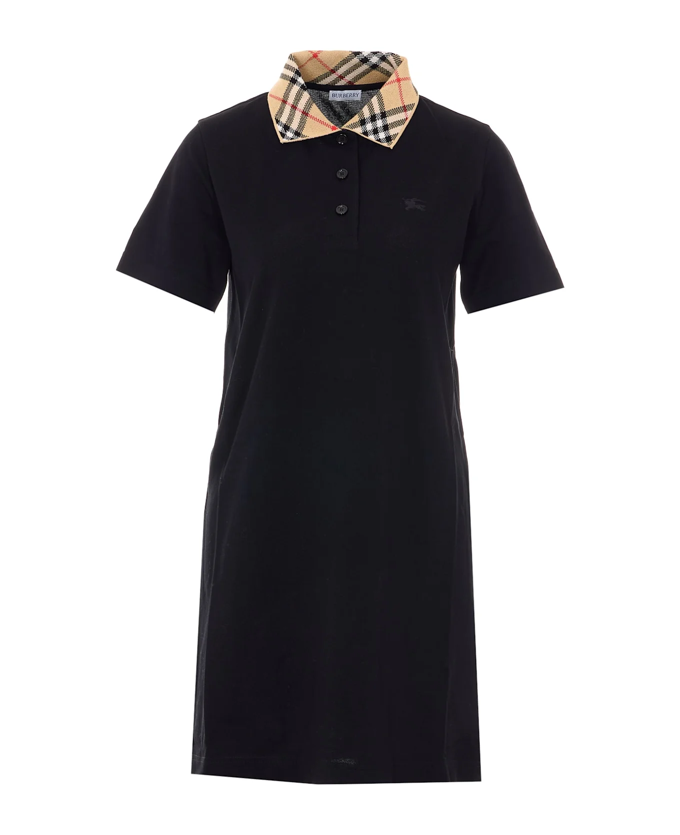 Burberry black check dress, regular collar with check motif, short sleeves, embroidered logo on the front, buttons closure Composition: 100% Cotton Made in: Portugal Color: Black Size and fit: - US SIZE Model number: 8122091A1189