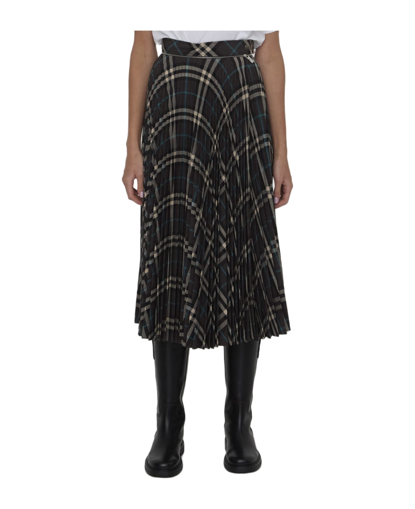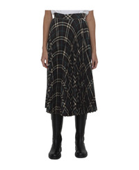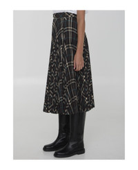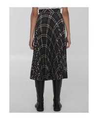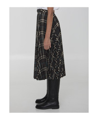Pleated Check Wool Blend Skirt