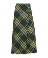 Check Printed Frayed-edge Midi Skirt