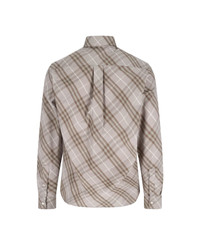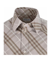 Burberry 'Check' grey cotton shirt with all-over contrast 'check' pattern, classic collar, button closure, back pin tucks, button cuffs, curved hem. Composition: 100% Cotton Made in: Italy Color: NEUTRALS Size and fit: - Vestibilita regolare Model number: 8115149ROBERT