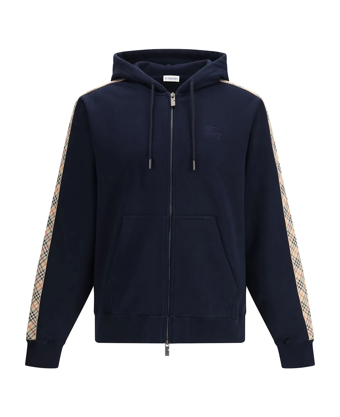 Check Trim Cotton Zip Hoodie