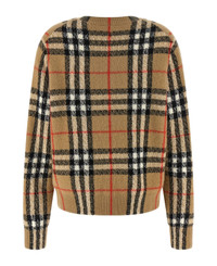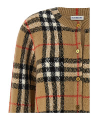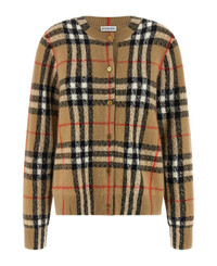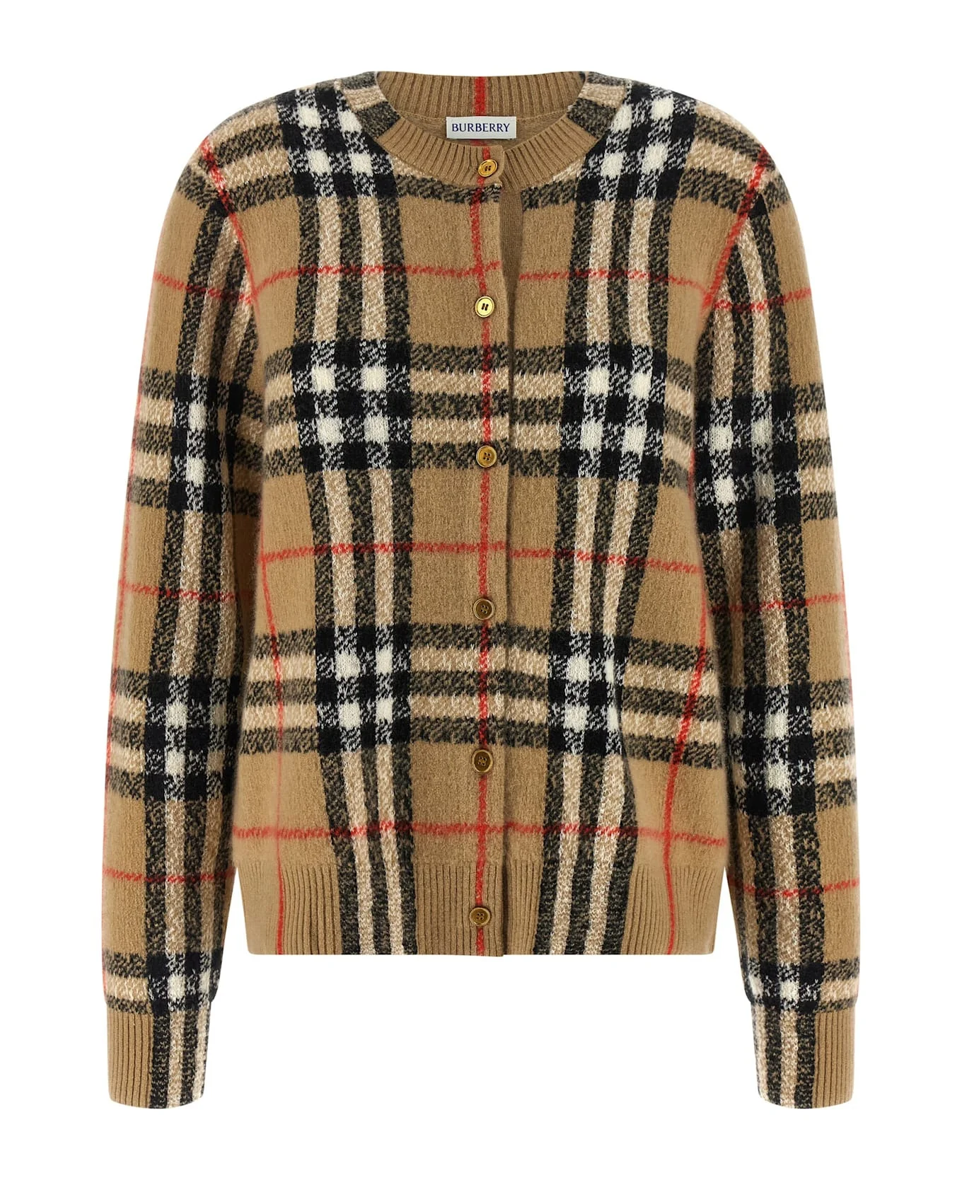 Double face wool and cashmere Clara cardigan with Burberry Check in jacquard, crew neck, front button closure, long cuffed sleeves. Composition: 54% cashmere 46% wool Made in: China Color: BROWN Size and fit: - true to size fit Model number: 8116947CLARA