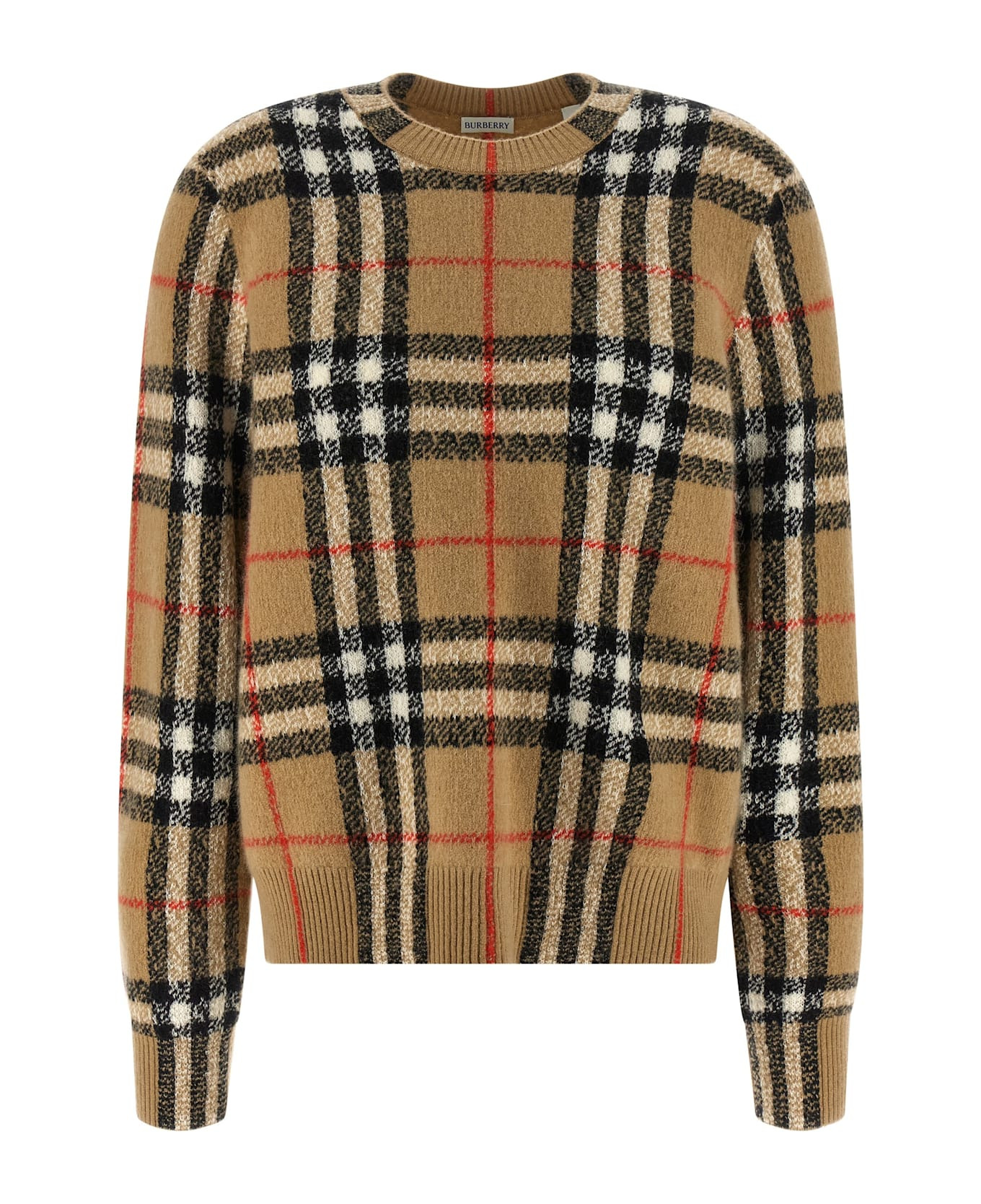 Double face wool and cashmere 'Constance' sweater with Burberry Check in jacquard, crew neck and long cuffed sleeves. Composition: 54% cashmere 46% wool Made in: China Color: Beige Size and fit: - true to size fit Model number: 8116946SANDIPCHECK