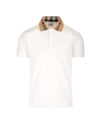 White cotton polo shirt from Burberry, with ribbed cuffs and Burberry Check collar. Composition: 100%COTTON Made in: Portugal Color: White Model number: 8071621A1464