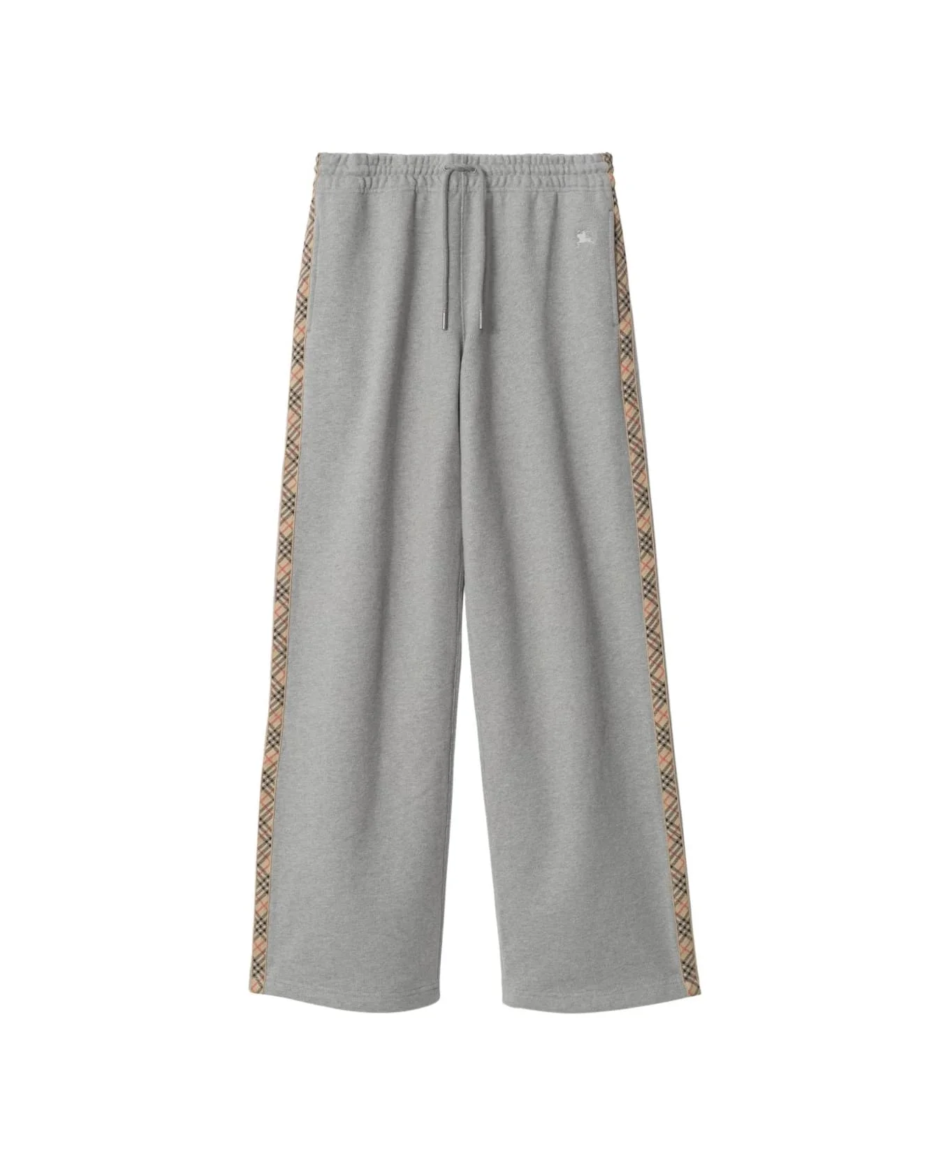 Gray Check Trim Cotton Track Pants