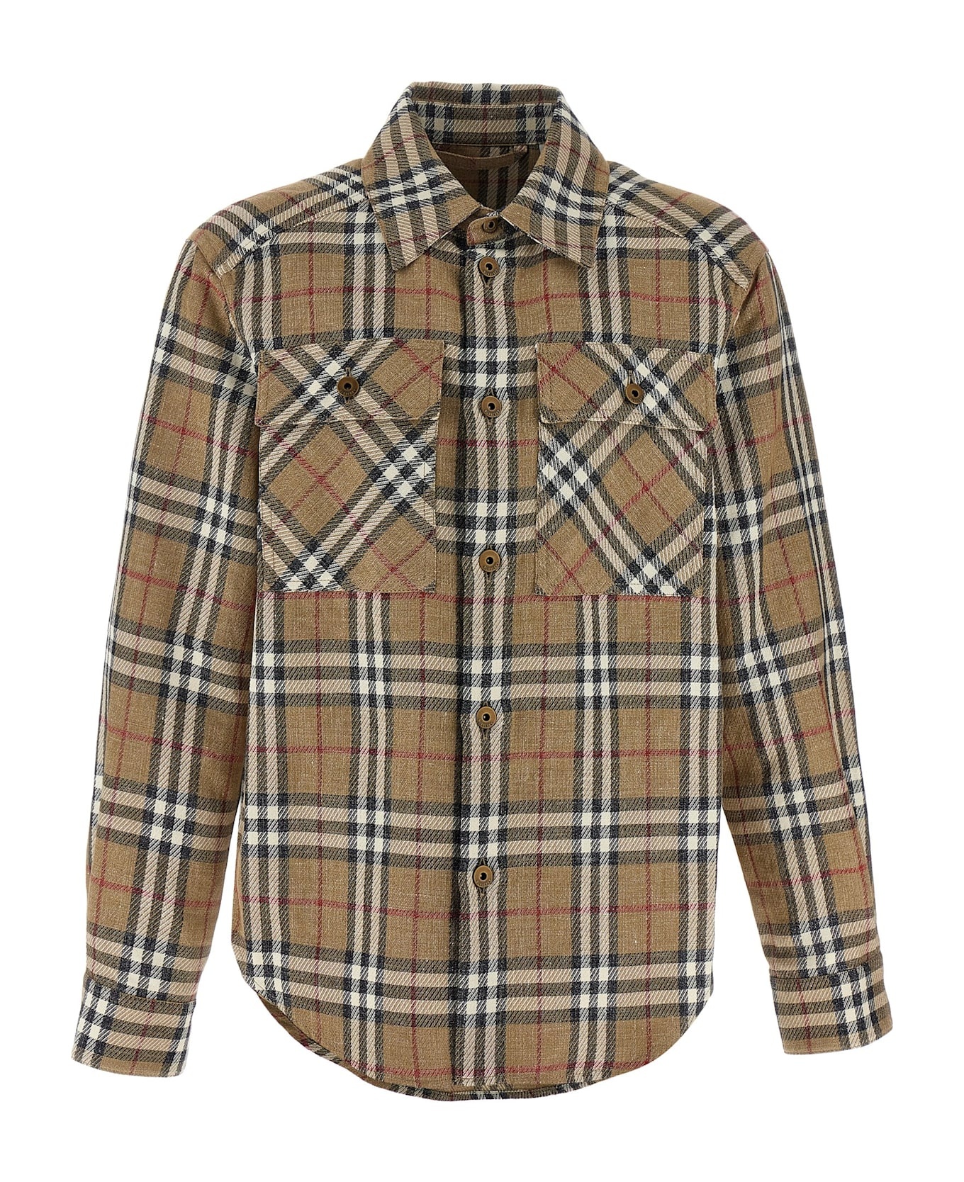 Burberry Check double face cotton and linen blend shirt, front button closure, pockets, long cuffed sleeves. Composition: 66% cotton, 34% linen Made in: Italy Color: Multicolor Size and fit: - oversized fit Model number: 8108014NUTIPCHECK