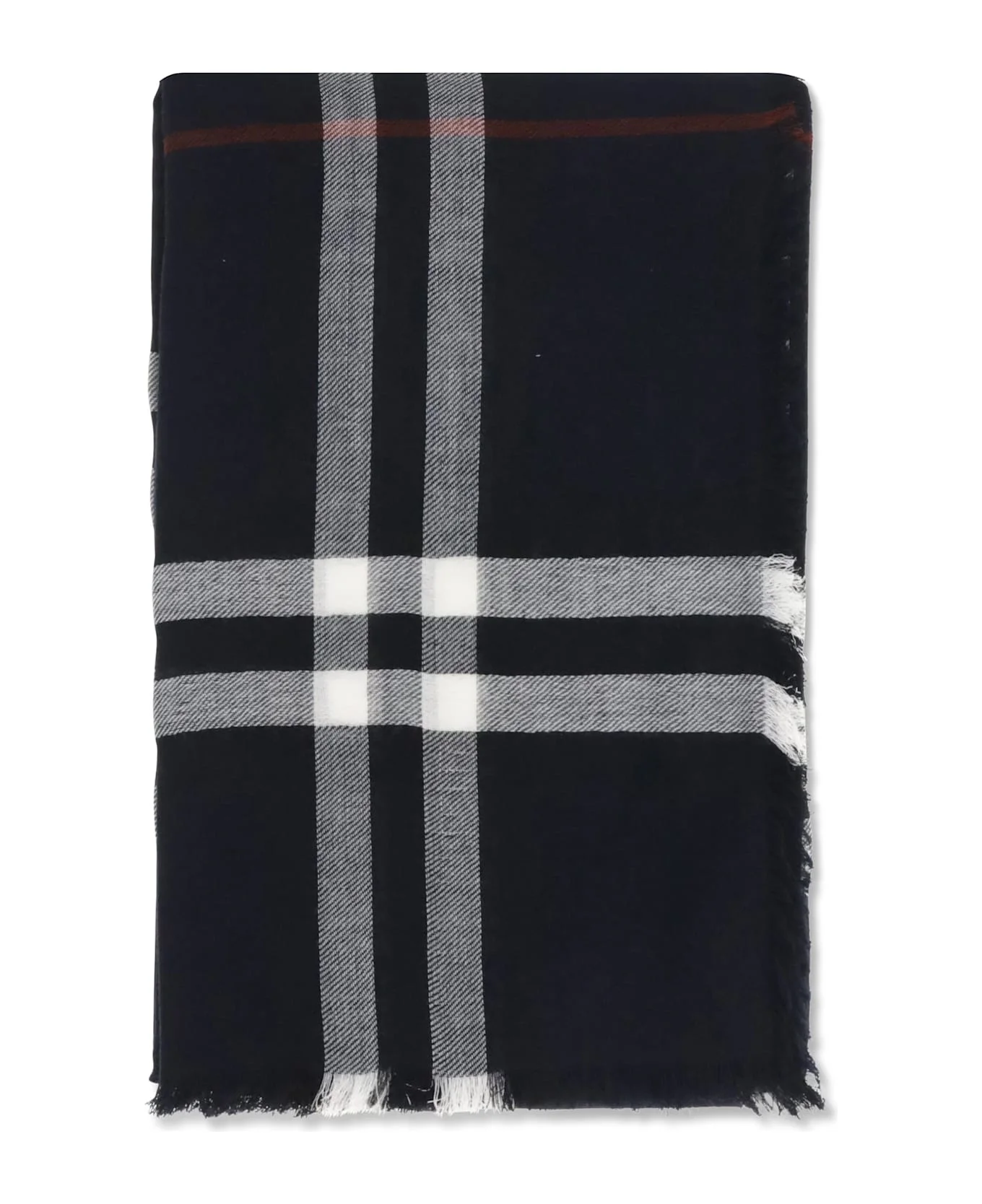 Navy Wide Check Wool Scarf