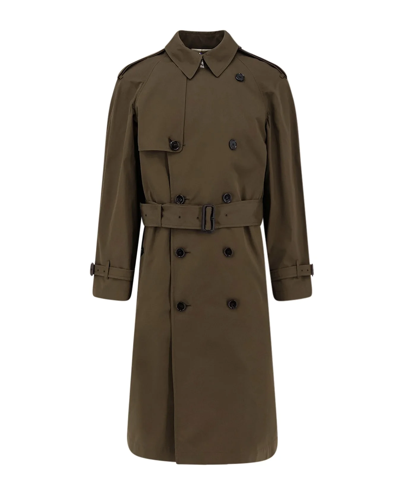 Double-breasted with buttons Belt with covered buckle Front button pockets Long sleeves with adjustable straps Traditional Check lining Made in Italy 70% organic cotton, 30% cotton SKU: 8119090B9720 Made in: Italy Color: Marsh Model number: 8119090B9720