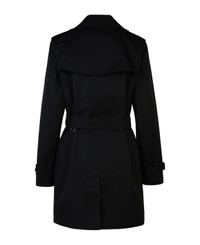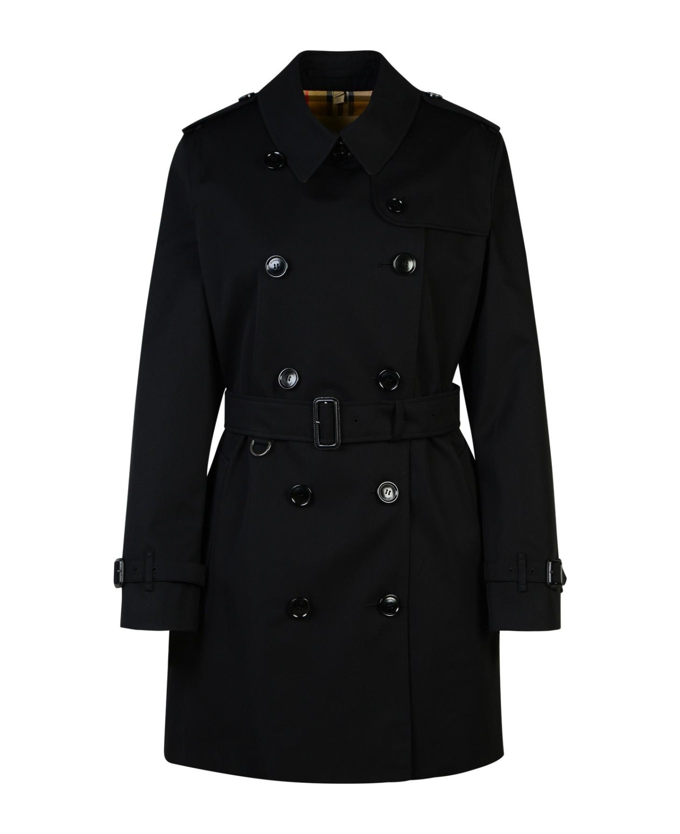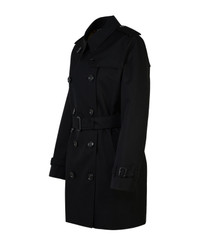 Cropped length, V-neck with hook closure, double-breasted button closure, tonal shoulder straps, belt with leather trims, side welt pockets with buttons, cuffs with finished strap, inner lining with 'check' pattern. Composition: 100% cotton Made in: United Kingdom Color: Black Model number: 8079415A1189