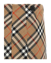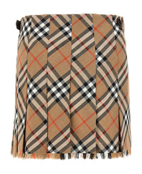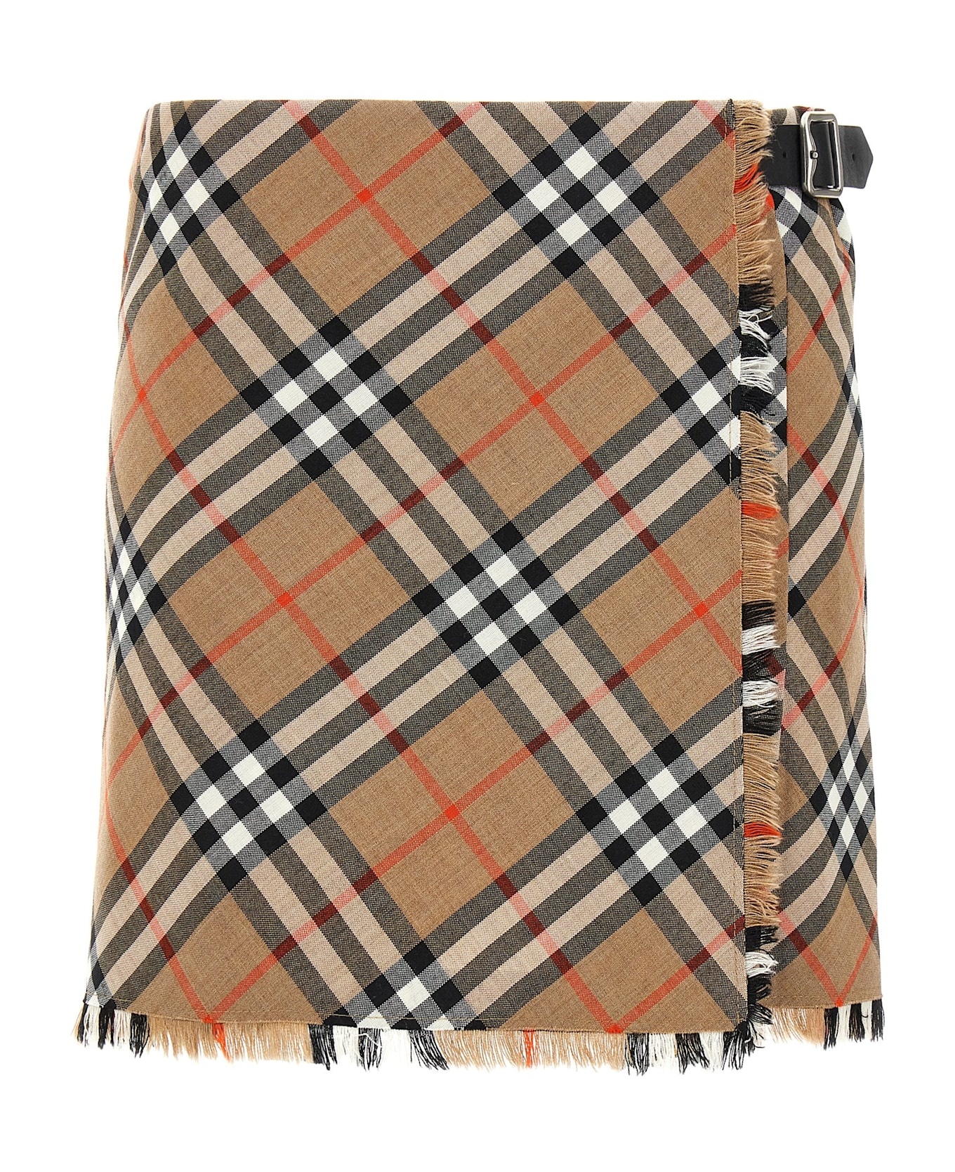 Mini skirt in woven wool blend with Burberry Check, kilt model with button closure and leather strap, fringes on the hem. Composition: 53% polyester, 47% virgin wool Made in: United Kingdom Color: Multicolor Size and fit: - true to size fit UK sizing Model number: 8102634SANDIPCHECK