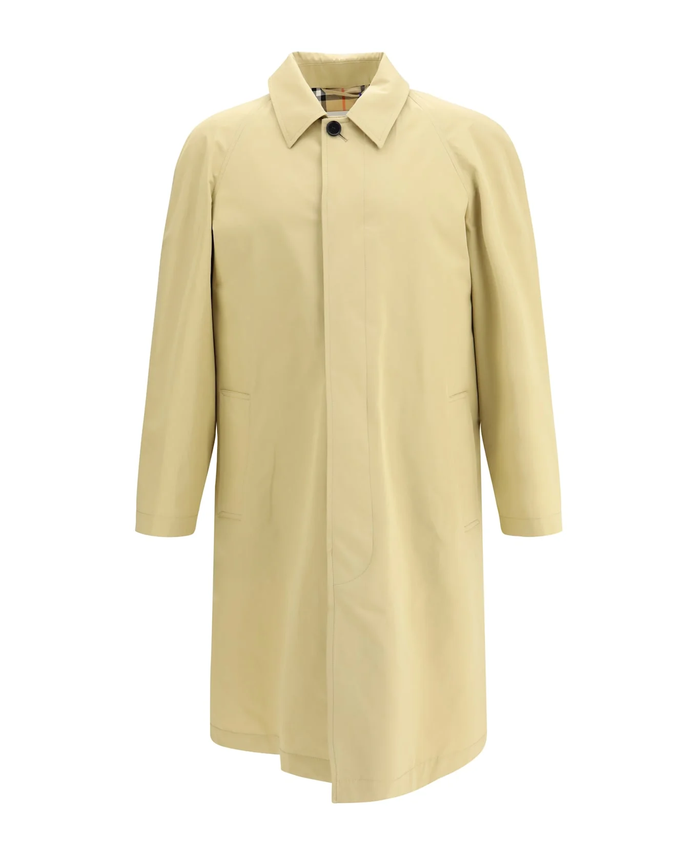 The long cotton car coat by burberry revisits the maison s heritage codes with a relaxed cut, conceived to offer a roomier fit than the regular silhouette. crafted in italy from lightweight cotton twill with a soft hand, it features a concealed single-breasted button closure, a throat latch, and welt side pockets. buttoned tabs at the cuffs and a back vent refine its tailored construction, while the partial lining and underside of the collar enriched with the burberry check introduce a signature detail that anchors the piece in the brand s timeless aesthetic. Composition: 100% % Cotton Made in: Italy Model number: 8117516C2981