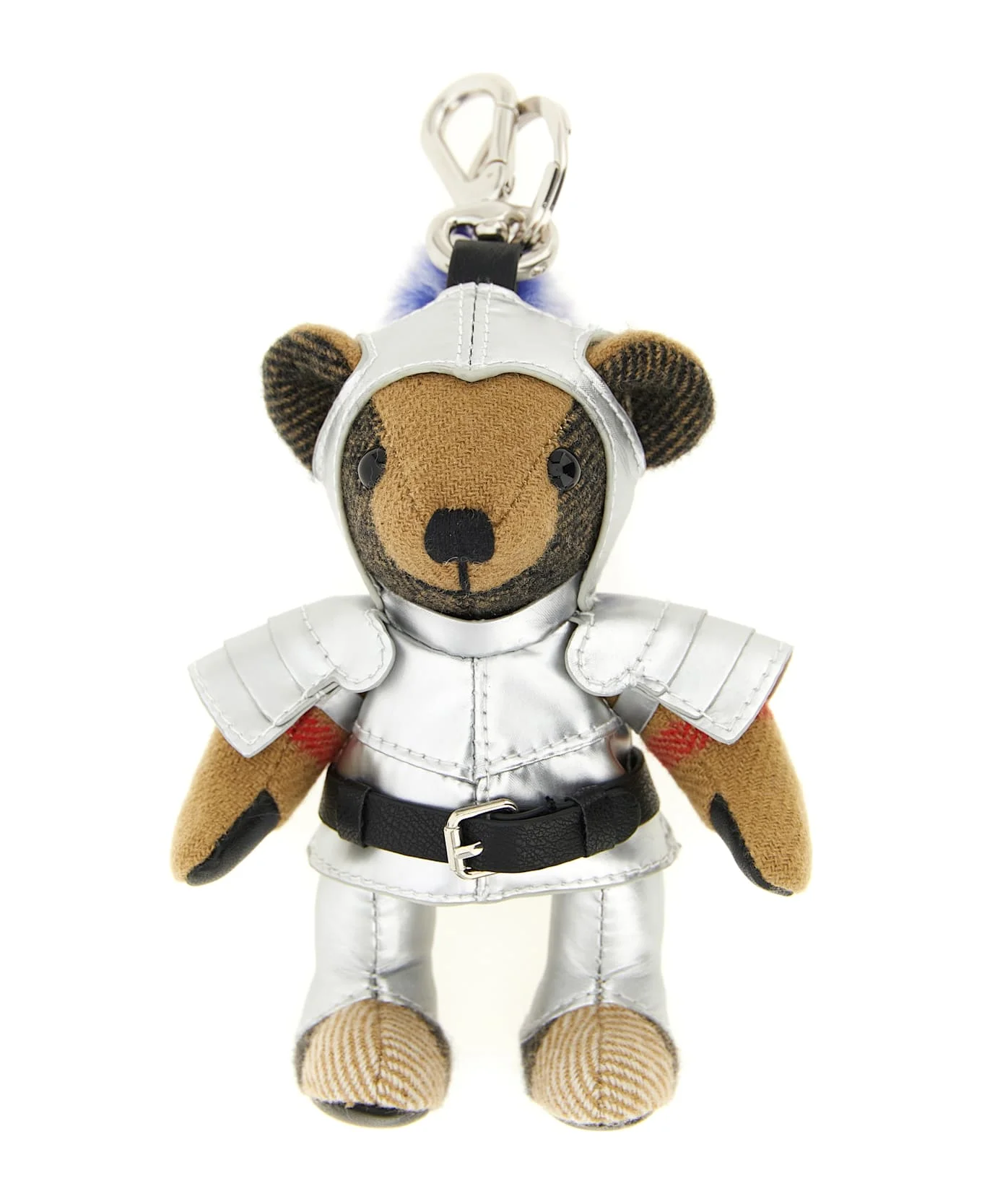 Burberry Check cashmere 'Orsetto Thomas' keyring with leather with snap hook and metal ring. Composition: 100% cashmere Made in: China Color: Multicolor Size and fit: - H 12 cm Model number: 8119993SILVER1