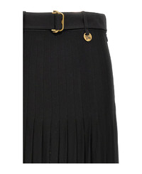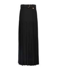 Long pleated skirt in semi-transparent viscose, belt at the waist with loops, metal logo detail, side hook and zip closure. Composition: 100% viscose Made in: Italy Color: Black Size and fit: - True to size fit UK sizing Model number: 8107609BLACK