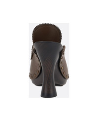 Burberry mules crafted in smooth brown leather with metal studs. Featuring an almond toe, oversized tongue with a B-shaped cutout on the front insert, leather lining, and a wood/rubber sole. The design is completed with a round wooden heel. Composition: calfskin Made in: Italy Color: Brown Model number: 8107177C1173