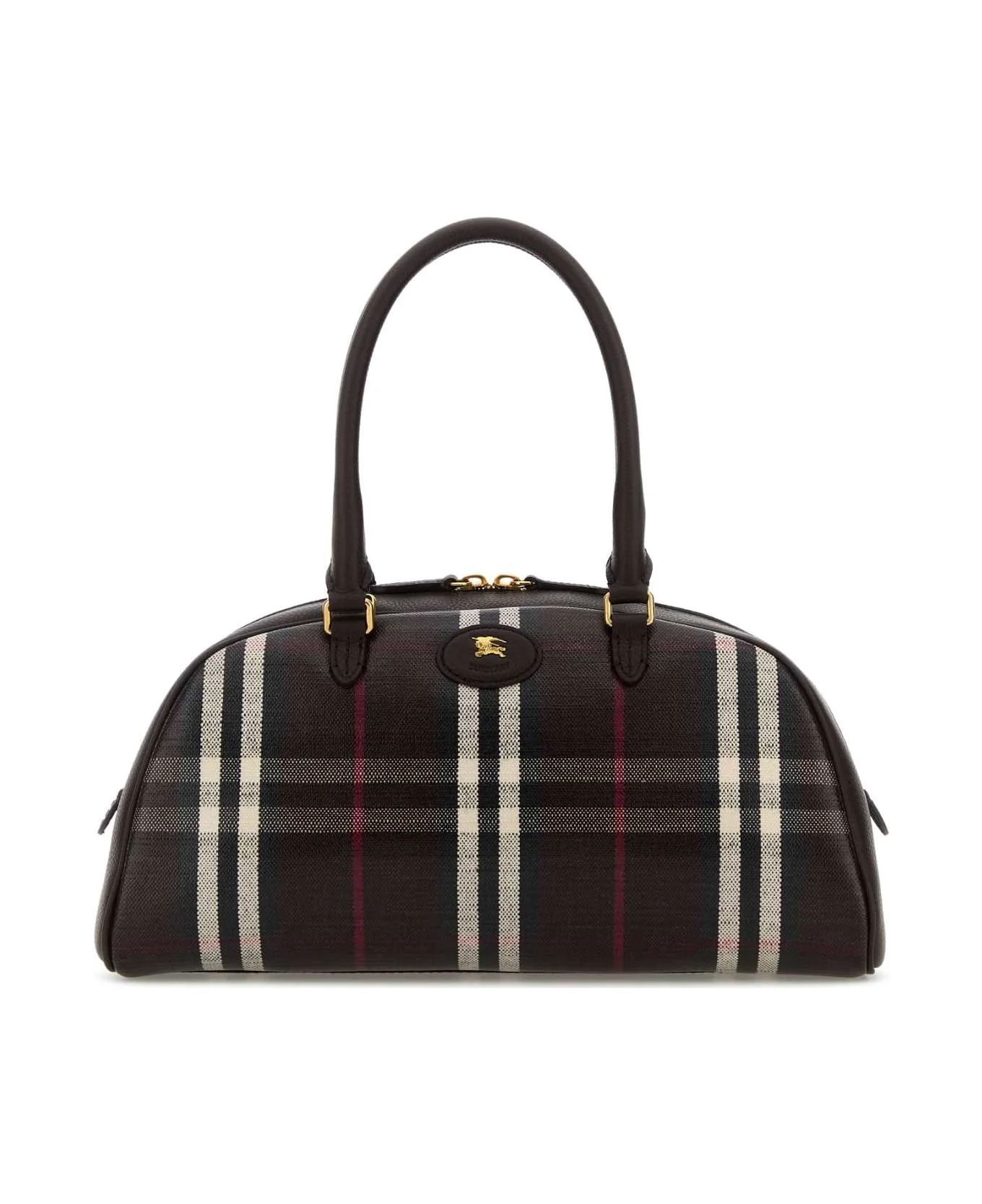 Printed Canvas Medium Highlands Handbag from Burberry Made in: Italy Color: MAHOGANY Size and fit: - Width: 33 cm Height: 17 cm Depth: 12,5 cm Handle height: 15 cm Min shoulder strap length: 37 cm Max shoulder strap length: 50 cm Model number: 8117521A4013