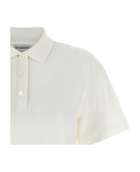 'Priscilla' cotton pique polo shirt, tone-on-tone 'Equestrian Knight Design' embroidery on the front, collar and buttons with knitted Burberry Check placket, short sleeves, side slits. Composition: 100% cotton Made in: Portugal Color: White Size and fit: - true to size fit Model number: 8118961CHALK