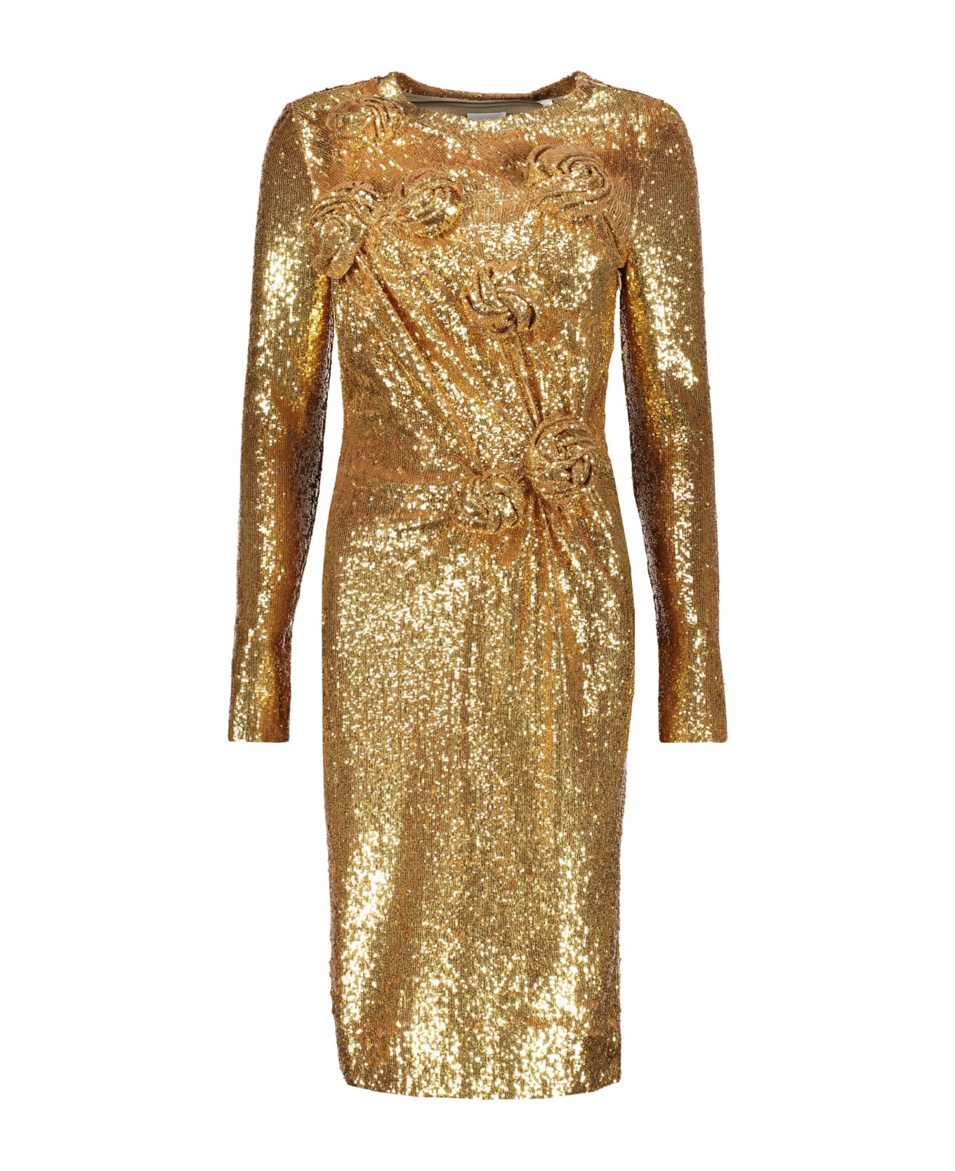All over rhinestones decorative applique on the front side zip closure 94% polyamide, 95% silk, 6% elastane, 5% elastane Composition: 94% % Polyamide, 95% % Silk, 6% % Elastane, 5% % Elastane Made in: Italy Color: Gold Model number: 4562597115829A1366