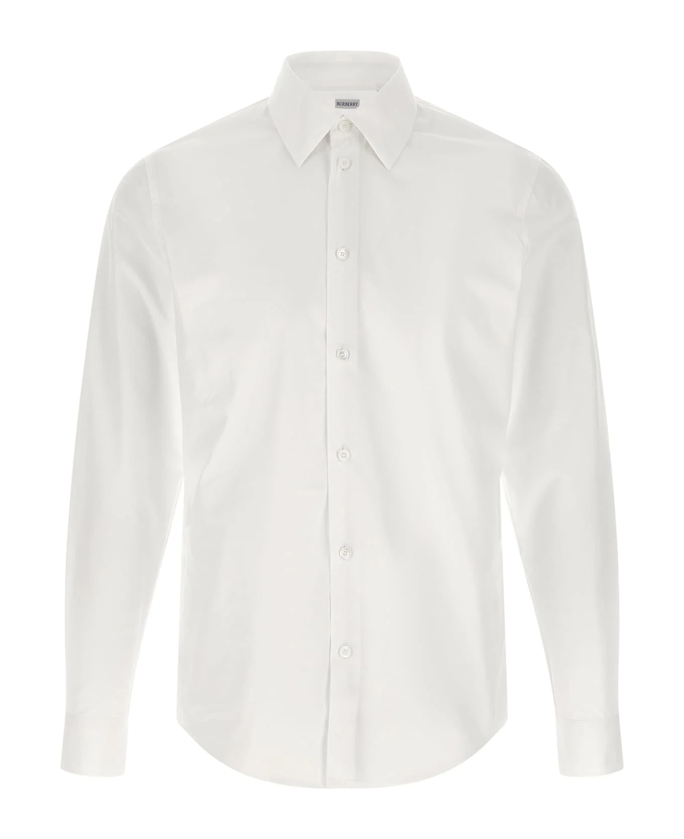 'Sam' cotton poplin shirt with tone-on-tone 'Equestrian Knight Design' embroidery on the front, Burberry Check grosgrain piping button closure, long cuffed sleeves. Composition: 100% cotton Made in: Italy Color: White Size and fit: - true to size fit Model number: 8122007OPTICWHITE