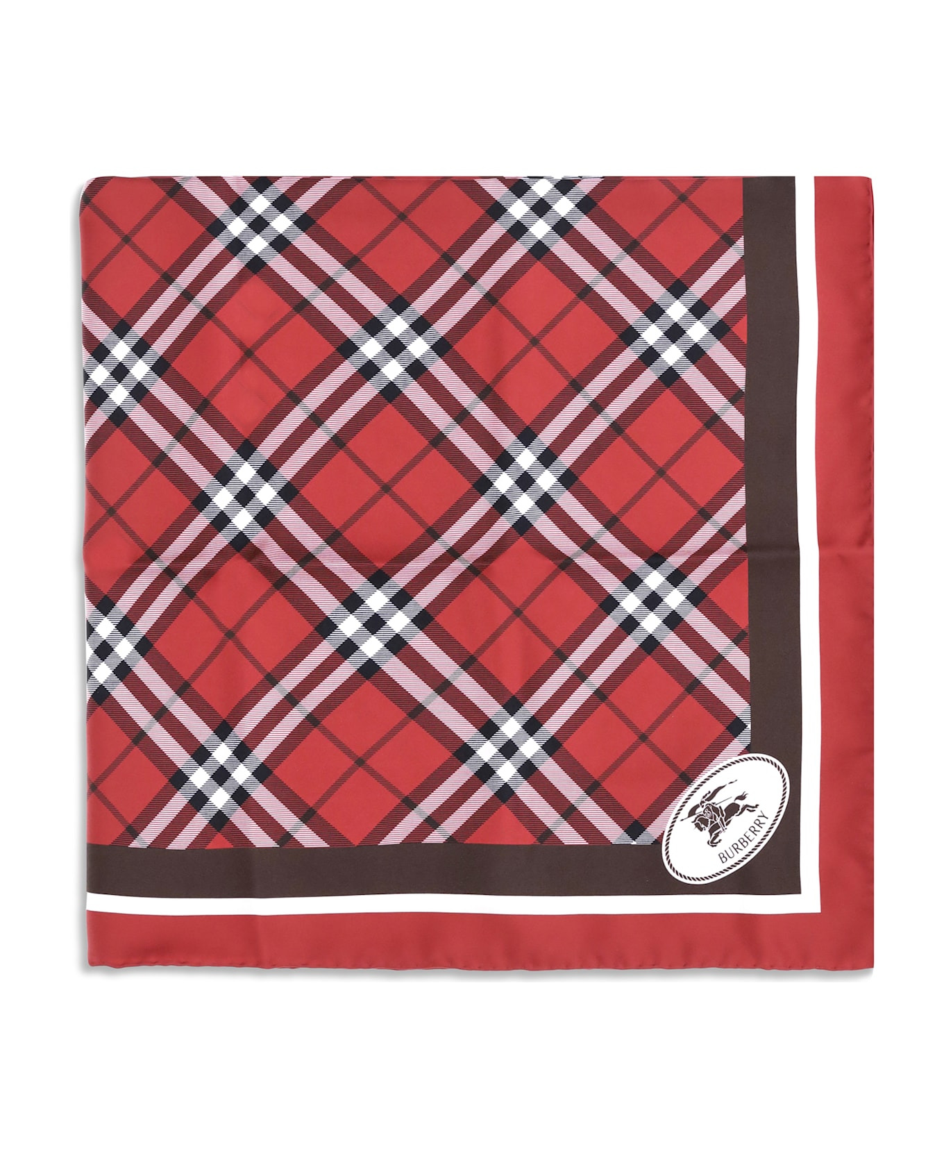 Burberry's silk check scarf is a refined accessory that reinterprets an archival pattern with contemporary elegance. square in shape, it features contrasting stripes on the edges, hand-rolled hems and the iconic knight stamp in the center. burberry lettering printed on the corners completes the design, making it a distinctive and timeless garment. Composition: 100% % Silk Made in: Italy Model number: 8113047C3383