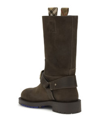 Burberry's suede saddle ankle boots combine elegance and character in a detail-oriented design. featuring a round toe and a buckled strap, they feature burberry lettering engraved on the buckles and the iconic equestrian knight design stamped on the sole. a versatile and distinctive model, ideal for completing casual or urban looks with a refined touch. Composition: 100% % Calf Leather Bos Taurus, 100% % Rubber Made in: Italy Color: BROWN Model number: 8113016LF