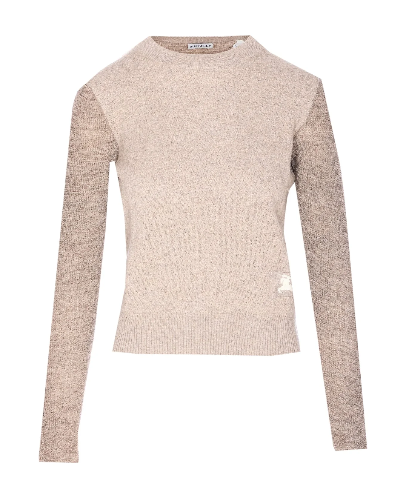 Burberry beige sweater, crewneck, long sleeves, embroidered logo on the front Composition: 70% Polyester, 30% Alpaca Wool, 100% Wool Made in: Italy Color: Beige Size and fit: - US SIZE Model number: 8117297C1509