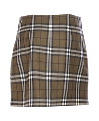 Button-embellished checked wool-twill mini skirt Green
