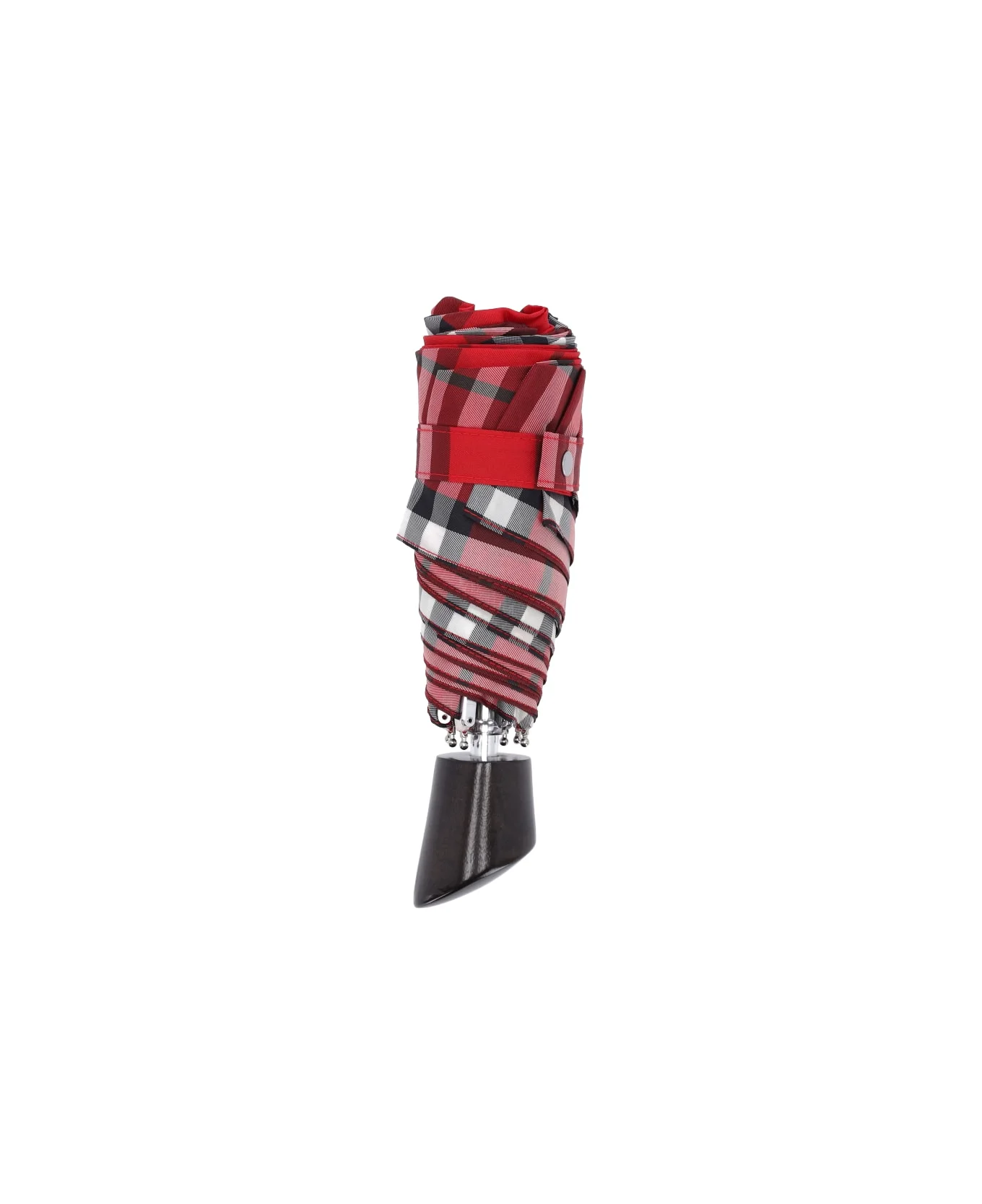 Burberry 'check' umbrella in multicolour fabric with check pattern, wooden handle, button closure, metal 'EDK' toe detail, zip check case. Composition: 10', 0% Polyester Made in: China Color: Red Model number: 8122035C3383