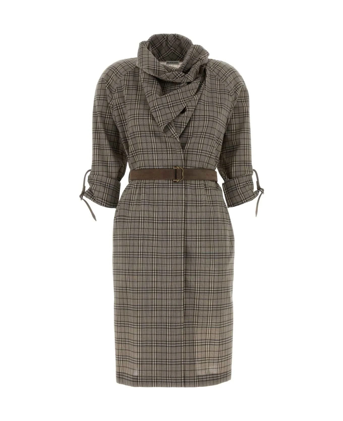 Scarf Collar Check Wool Dress