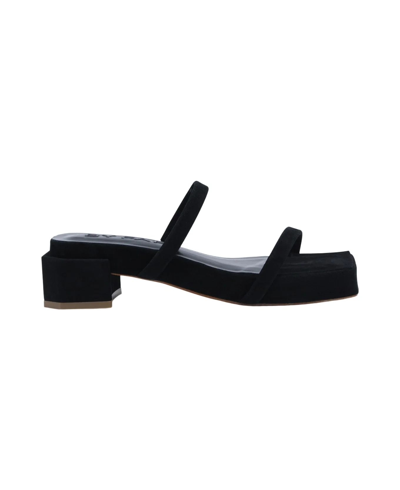 Black suede leather Tanya flat from By Far featuring round open toe, medium square heel, leather sole and two straps. Composition: _cover, 100% Le Sole, 100% Le Made in: Bulgaria Color: Black Model number: MWFFO031SU002BK001PLBK001