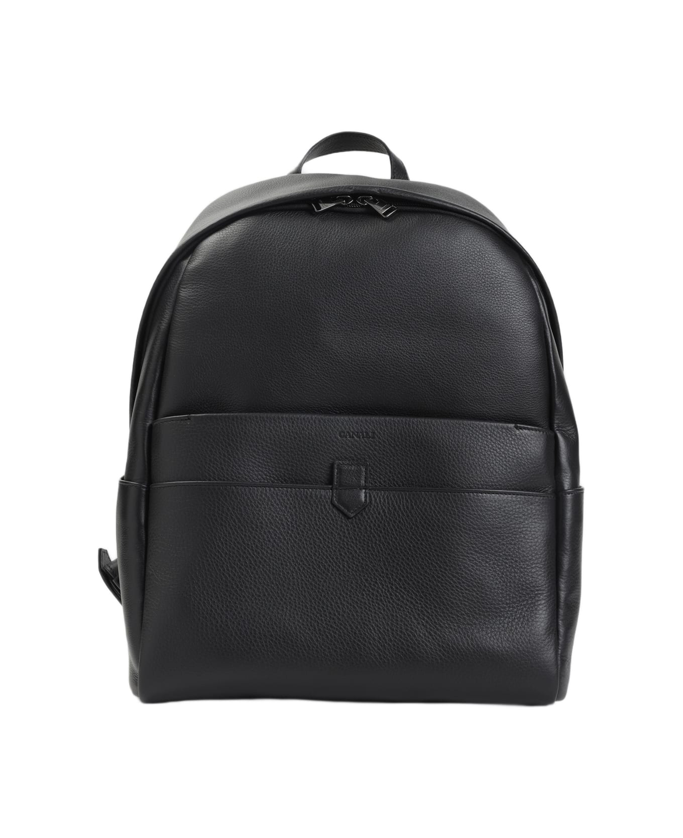 BLACK HAMMERED CALFSKIN BACKPACK WITH FUNCTIONAL DETAILS