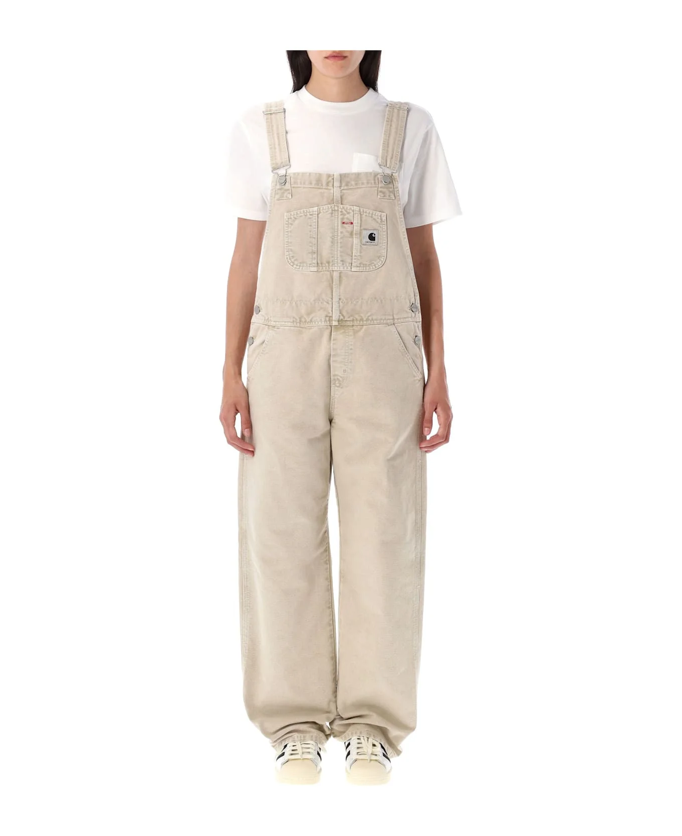 Organic Cotton Bib Overall Straight By Carhartt Wip. Faeturing: Adjustable Straps Triple-stitched Chest, Side, And Back Pockets Square Label At Chest Pocket Chalk Wash Model Is 1,70 M And Wears Size S Composition: 100% organic cotton Made in: Tunisia Color: DUSTY H BROWN Model number: I03557207E5F
