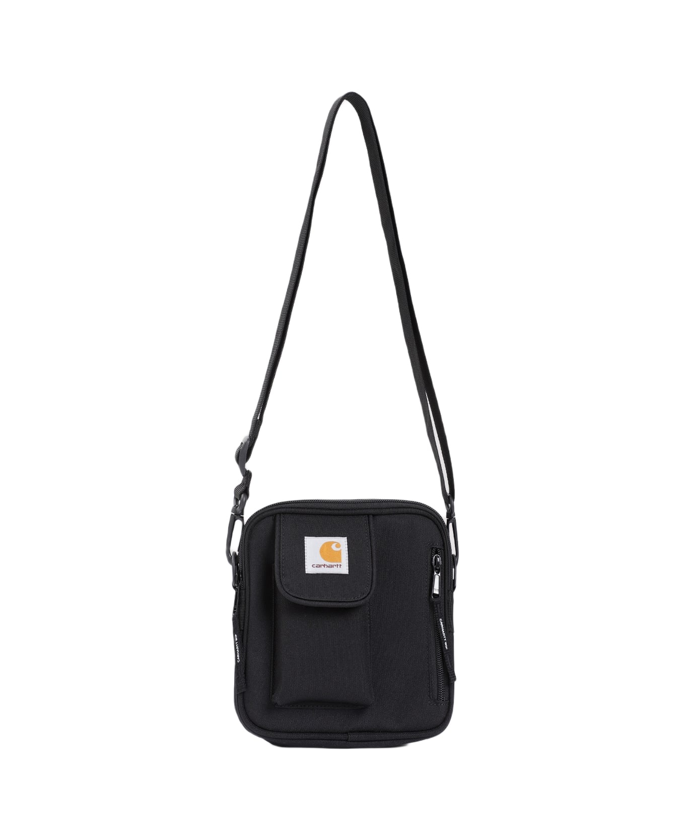 Carhartt Wip Black Essenzials Bag. Crafted in polyester fabric, top adjustable and removable shoulder strap, top two-way zipped fastening, front flap pocket with signature patch logo, front zipped pocket, one main compartment. Made in: China Color: Black Size and fit: - W:15,5cm H:16,5cm D:6cm Model number: I03147089XXBLACK