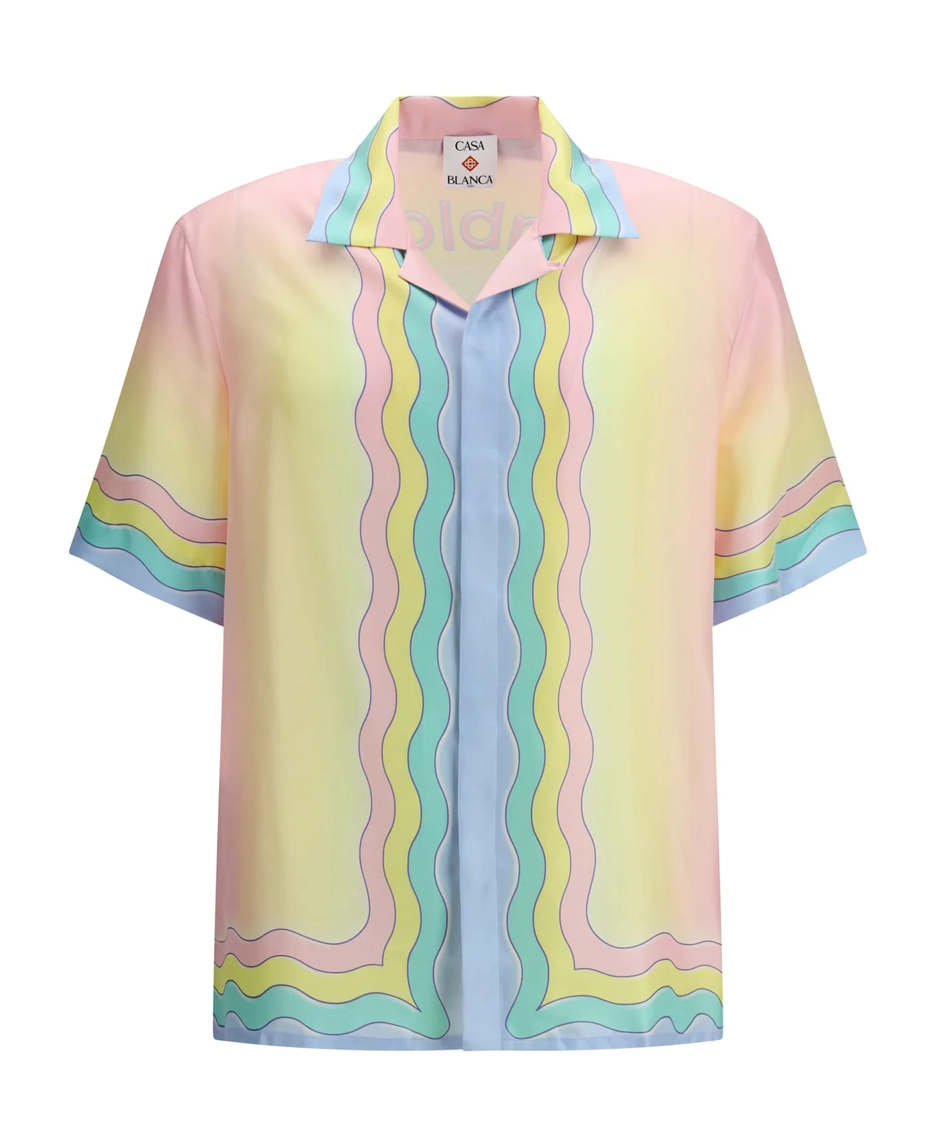 The polo shirt by casablanca reflects the label s distinctive aesthetic, tapping into logomania with an all-over monogram jacquard pattern. the design is framed by a classic contrast collar that adds structure and visual interest, while the refined construction and quality fabric ensure a comfortable and elevated feel. embodying the brand s signature visual language, the piece is versatile and perfectly suited for both casual and more sophisticated looks. Composition: 100% % Silk Made in: Italy Model number: MSP26SH00303FORTHELOVE